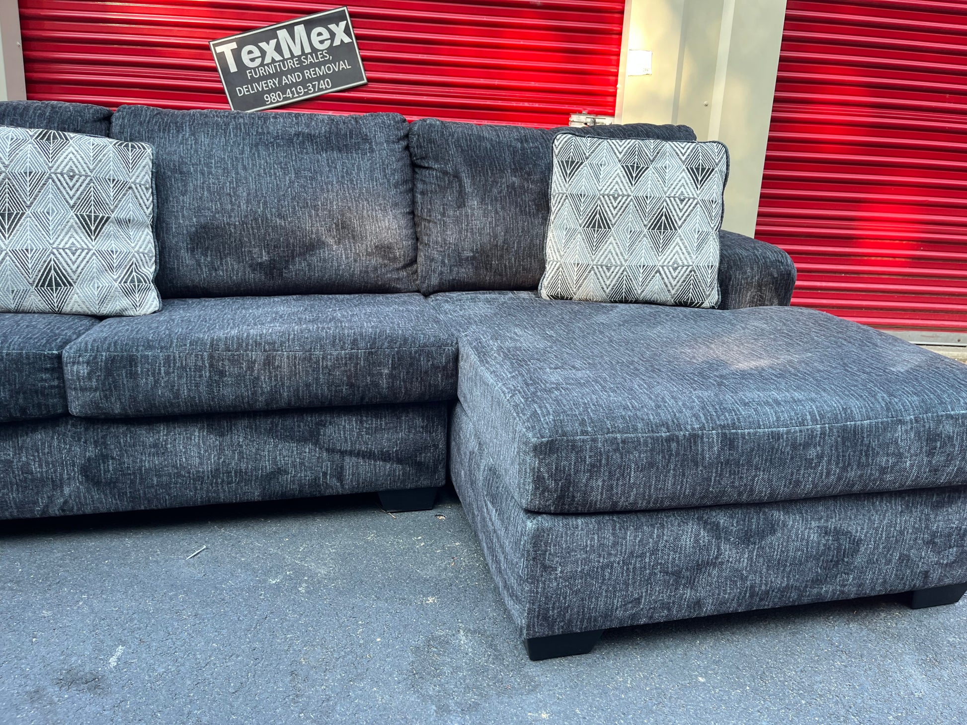 Navy blue Ashley furniture ballinasloe 3Pcs sectional with matching throw pillows